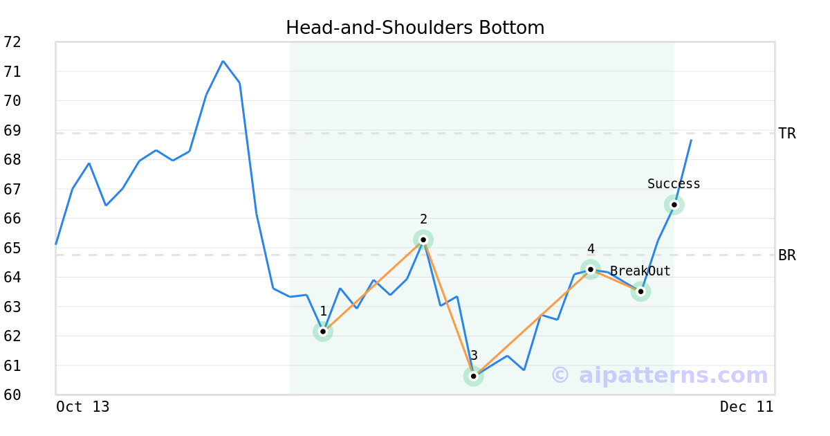 On December 02, 2025, A.I.dvisor detected a Head-and-Shoulders Bottom Pattern (Bullish) for Moelis & Company (MC, $63.50). On December 02, 2025, A.I.dvisor confirmed the Bullish pattern, setting a target price of $68.89. 2 days later, on December 04, 2025, MC reached the target price resulting in a for traders who took a long position in the stock.