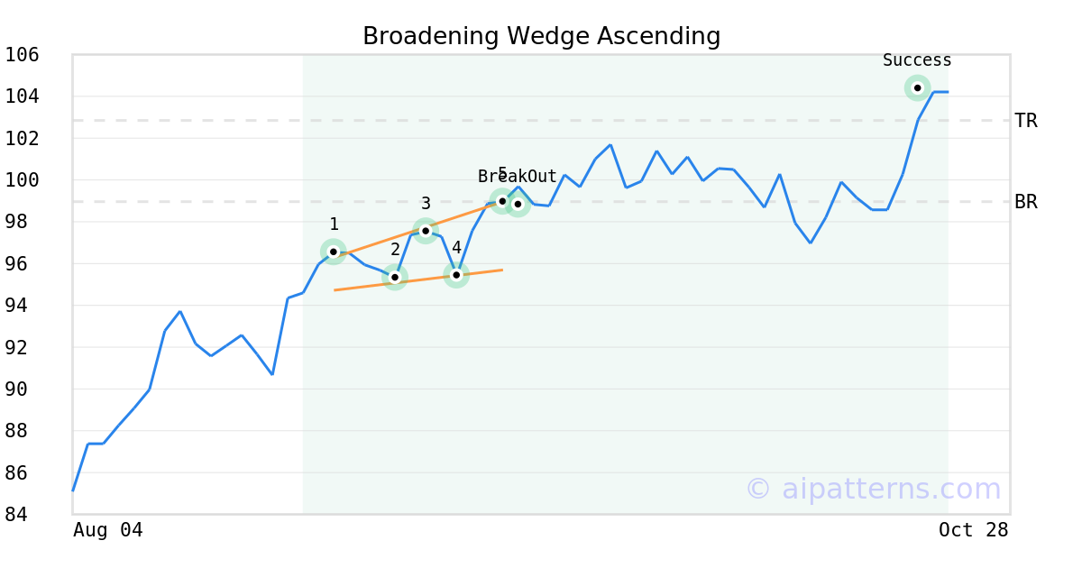On September 12, 2025, A.I.dvisor detected a Broadening Wedge Ascending Pattern (Bullish) for Mueller Industries (MLI, $98.96). On September 15, 2025, A.I.dvisor confirmed the Bullish pattern, setting a target price of $102.84. 36 days later, on October 21, 2025, MLI reached the target price resulting in a for traders who took a long position in the stock.
