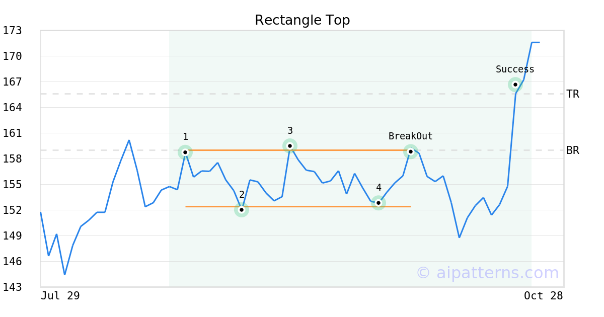 On October 02, 2025, A.I.dvisor detected a Rectangle Top Pattern (Bullish) for 3M Company (MMM, $158.80). On October 02, 2025, A.I.dvisor confirmed the Bullish pattern, setting a target price of $165.59. 19 days later, on October 21, 2025, MMM reached the target price resulting in a for traders who took a long position in the stock.