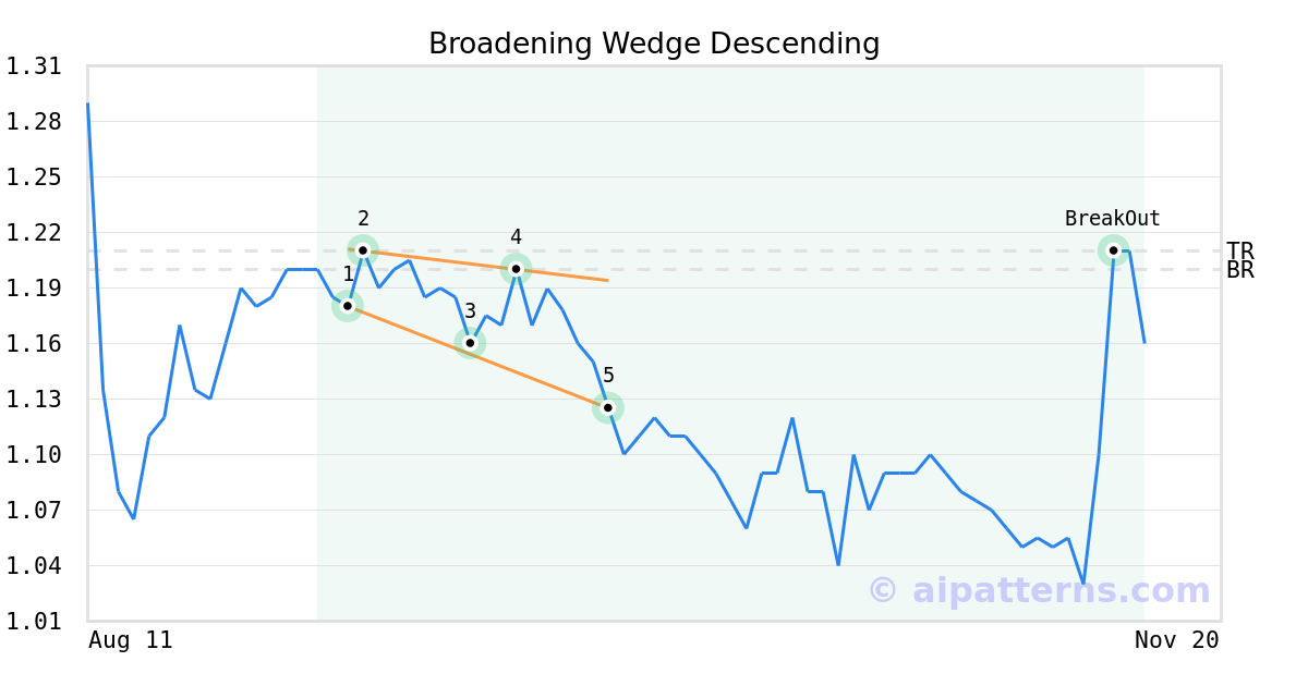 On September 29, 2025, A.I.dvisor detected a Broadening Wedge Descending Pattern (Bullish) for MIND C.T.I. Ltd (MNDO, $1.13). On November 13, 2025, A.I.dvisor confirmed the Bullish pattern, setting a target price of $1.21. On November 13, 2025, MNDO reached the target price resulting in a for traders who took a long position in the stock.