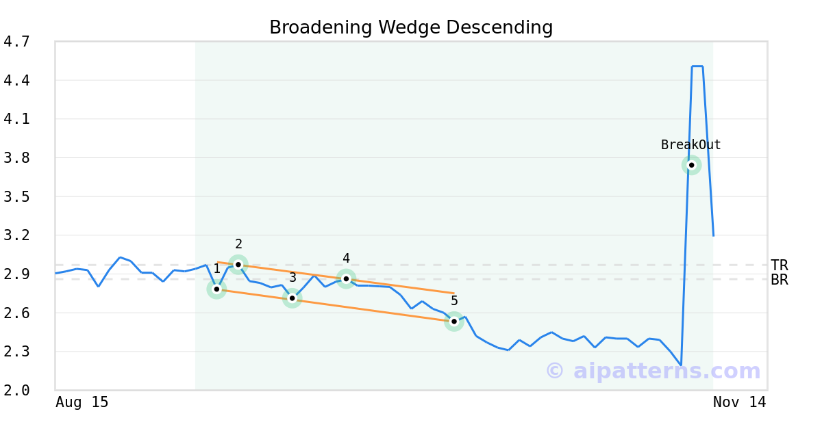 On October 08, 2025, A.I.dvisor detected a Broadening Wedge Descending Pattern (Bullish) for Motorsport Games (MSGM, $2.53). On November 07, 2025, A.I.dvisor confirmed the Bullish pattern, setting a target price of $2.97. On November 07, 2025, MSGM reached the target price resulting in a +4 for traders who took a long position in the stock.