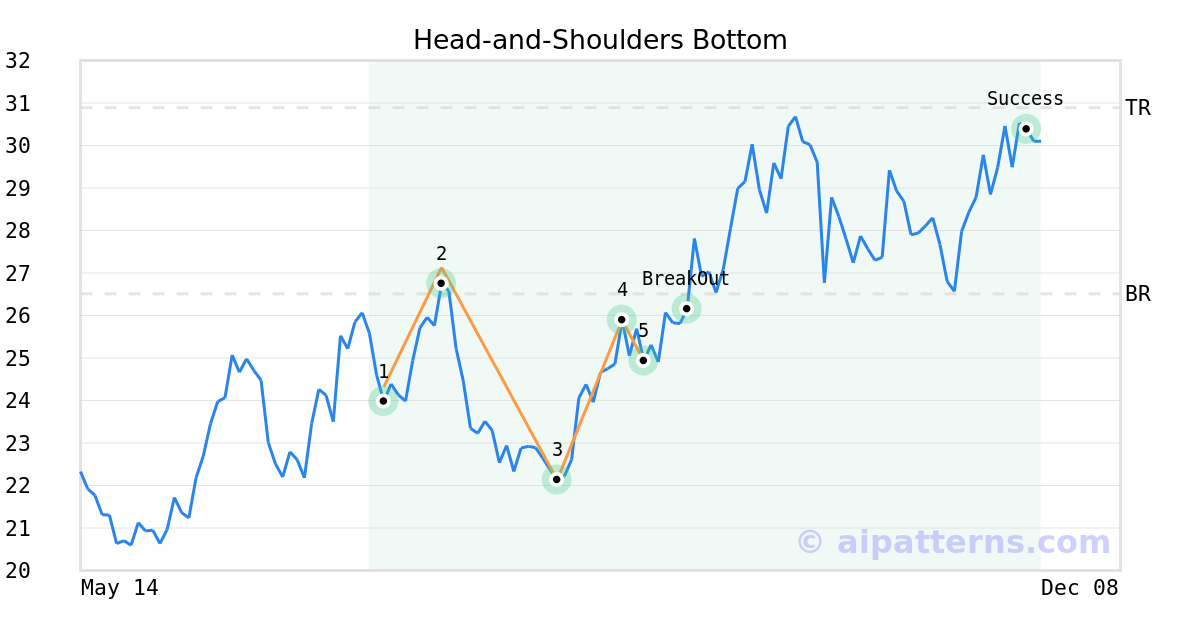 On September 05, 2025, A.I.dvisor detected a Head-and-Shoulders Bottom Pattern (Bullish) for Murphy Oil Corp (MUR, $24.93). On September 15, 2025, A.I.dvisor confirmed the Bullish pattern, setting a target price of $30.89. 65 days later, on November 19, 2025, MUR reached the target price resulting in a +2 for traders who took a long position in the stock.