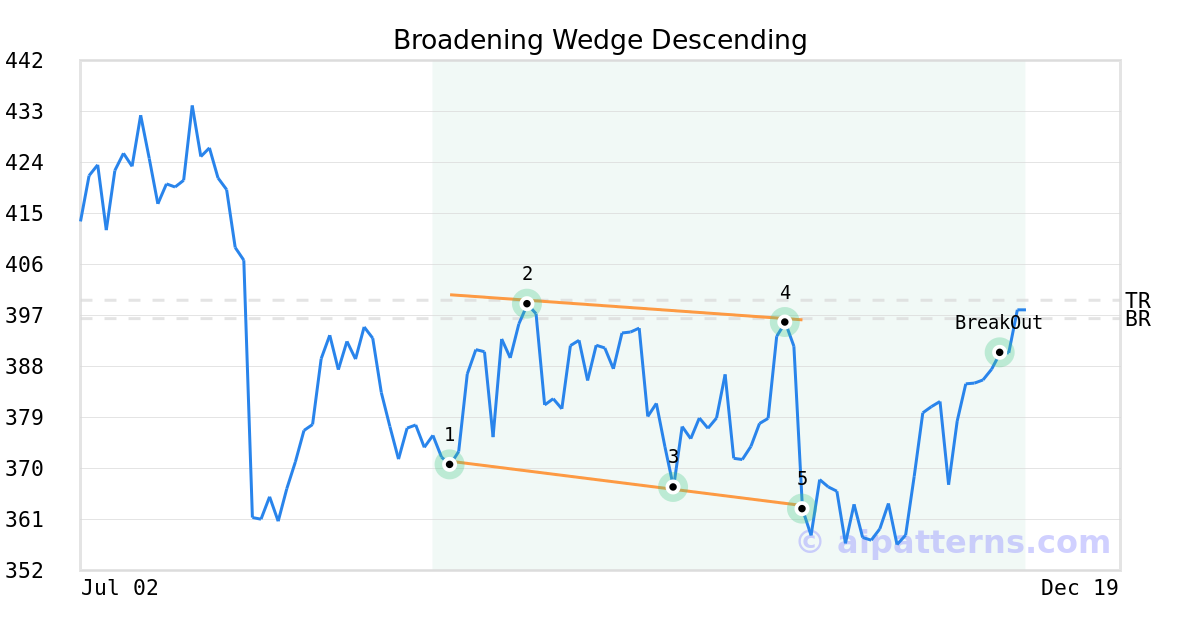 On October 30, 2025, A.I.dvisor detected a Broadening Wedge Descending Pattern (Bullish) for Murphy USA (MUSA, $362.83). On December 03, 2025, A.I.dvisor confirmed the Bullish pattern, setting a target price of $399.69. On December 03, 2025, MUSA reached the target price resulting in a for traders who took a long position in the stock.