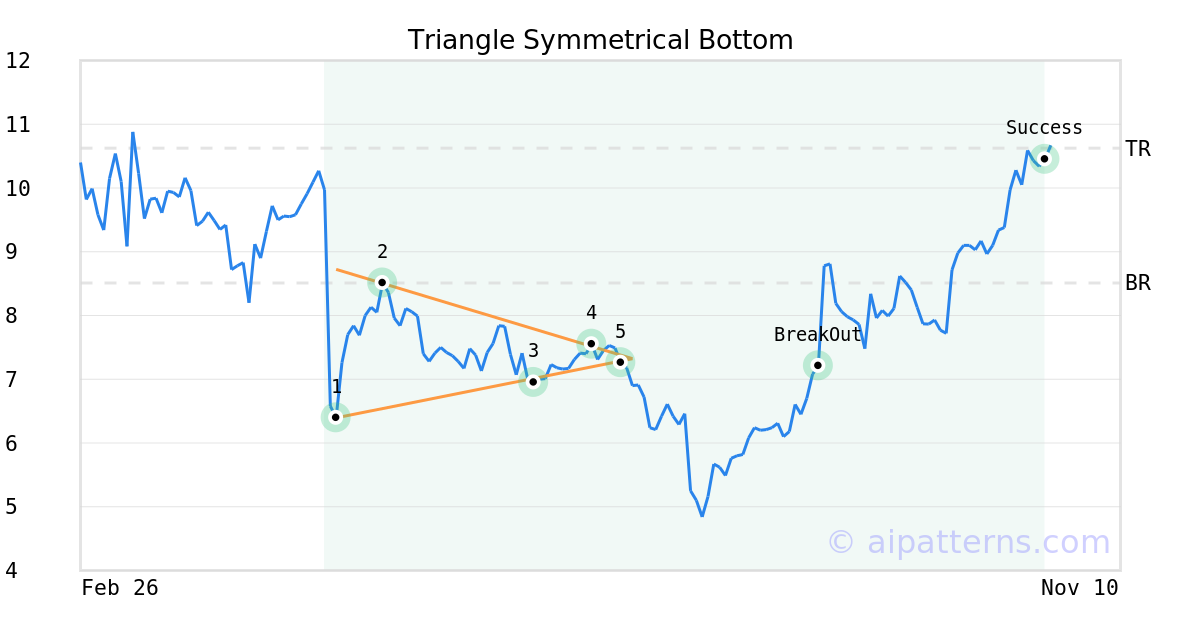 On July 11, 2025, A.I.dvisor detected a Triangle Symmetrical Bottom Pattern (Bullish) for NeoGenomics (NEO, $7.26). On August 28, 2025, A.I.dvisor confirmed the Bullish pattern, setting a target price of $10.63. 56 days later, on October 23, 2025, NEO reached the target price resulting in a +4 for traders who took a long position in the stock.