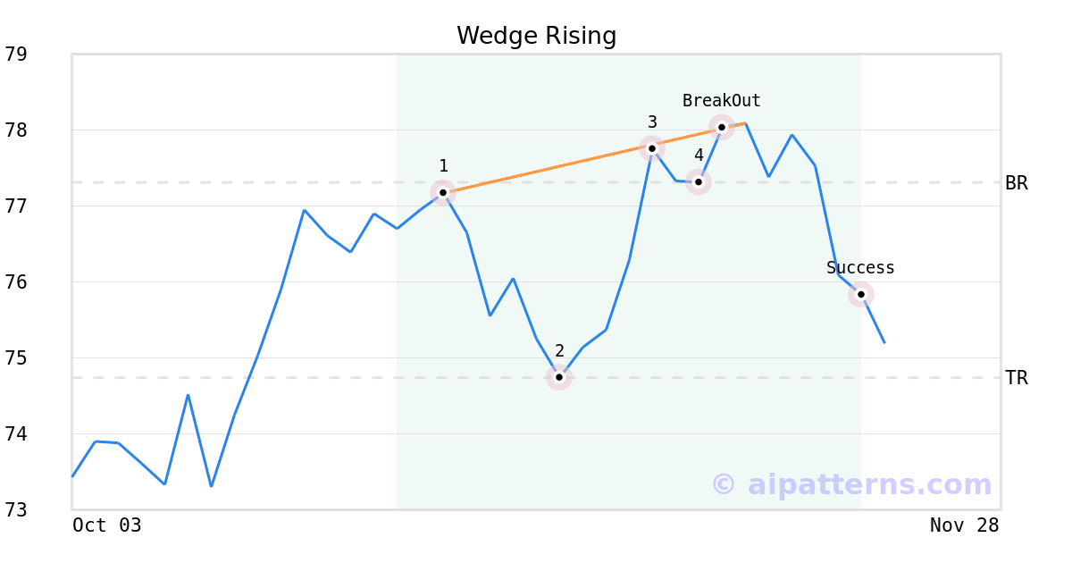 On November 12, 2025, A.I.dvisor detected a Wedge Rising Pattern (Bearish) for National Grid PLC (NGG, $78.03). On November 12, 2025, A.I.dvisor confirmed the Bearish pattern, setting a target price of the stock. On November 20, 2025, the stock hit the target price of $74.74 – resulting in a gain for traders who shorted the stock on the pattern detection date.