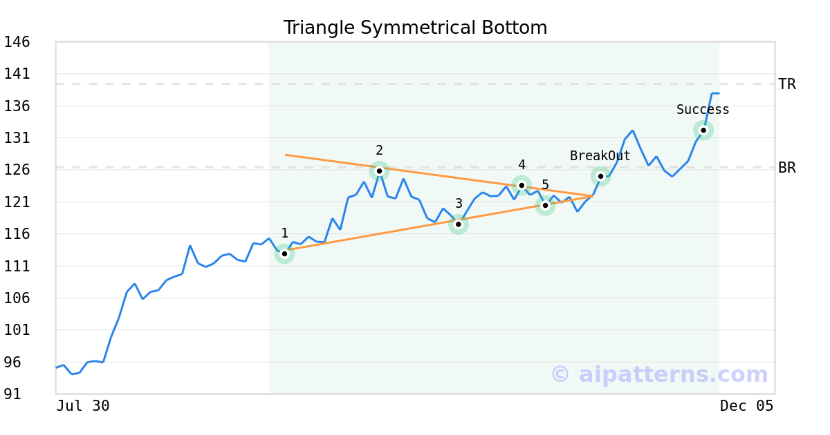 On October 27, 2025, A.I.dvisor detected a Triangle Symmetrical Bottom Pattern (Bullish) for National Healthcare Corp (NHC, $120.38). On November 05, 2025, A.I.dvisor confirmed the Bullish pattern, setting a target price of $139.40. 19 days later, on November 24, 2025, NHC reached the target price resulting in a for traders who took a long position in the stock.