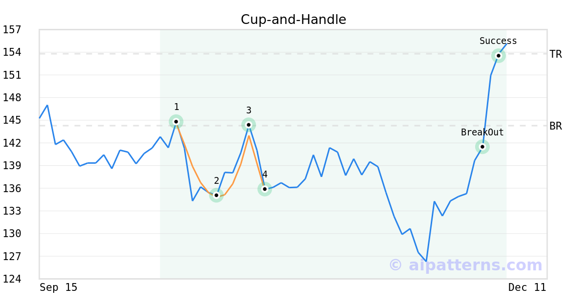 On October 23, 2025, A.I.dvisor detected a Cup-and-Handle Pattern (Bullish) for Old Dominion Freight Line (ODFL, $135.86). On December 02, 2025, A.I.dvisor confirmed the Bullish pattern, setting a target price of $153.80. 2 days later, on December 04, 2025, ODFL reached the target price resulting in a +1 for traders who took a long position in the stock.