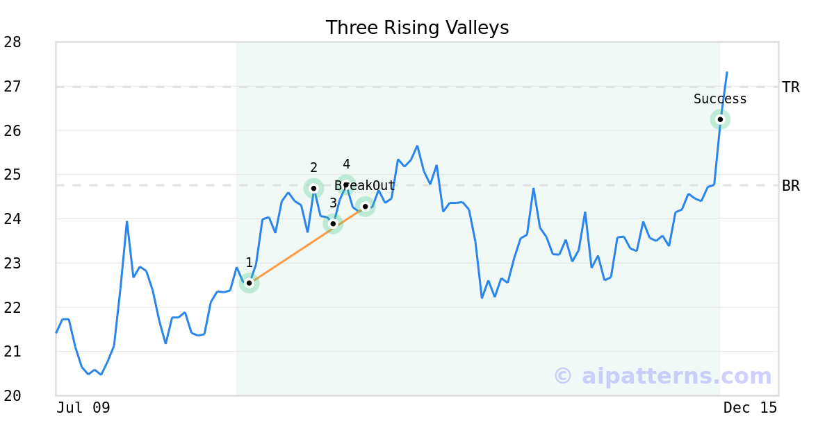 On September 16, 2025, A.I.dvisor detected a Three Rising Valleys Pattern (Bullish) for Oceaneering International (OII, $24.27). On September 16, 2025, A.I.dvisor confirmed the Bullish pattern, setting a target price of $26.98. 78 days later, on December 03, 2025, OII reached the target price resulting in a for traders who took a long position in the stock.