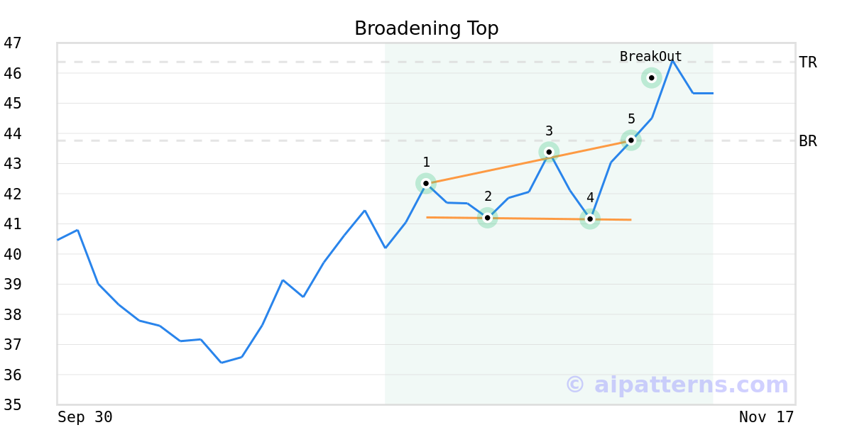 On November 07, 2025, A.I.dvisor detected a Broadening Top Pattern (Bullish) for Phibro Animal Health Corp (PAHC, $43.76). On November 10, 2025, A.I.dvisor confirmed the Bullish pattern, setting a target price of $46.37. On November 10, 2025, PAHC reached the target price resulting in a for traders who took a long position in the stock.
