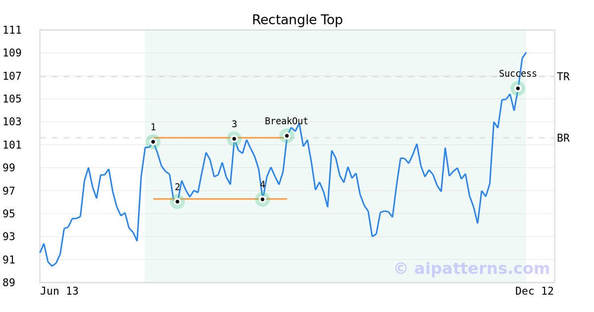 On September 11, 2025, A.I.dvisor detected a Rectangle Top Pattern (Bullish) for PACCAR (PCAR, $101.76). On September 11, 2025, A.I.dvisor confirmed the Bullish pattern, setting a target price of $106.94. 82 days later, on December 02, 2025, PCAR reached the target price resulting in a for traders who took a long position in the stock.