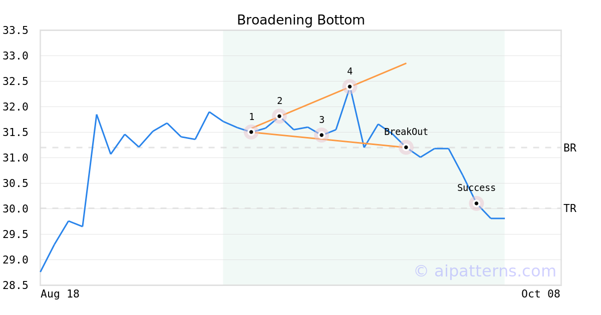 PEBK may jump back above the lower band and head toward the middle band. Traders may consider buying the stock or exploring call options.