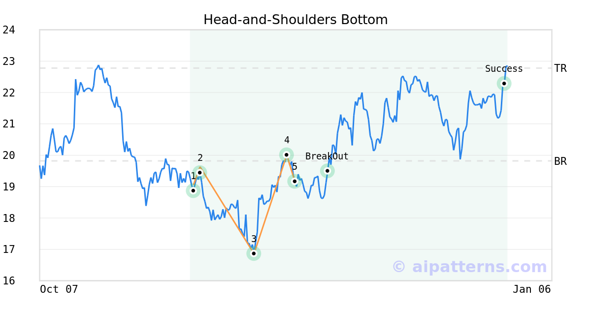 On May 22, 2025, A.I.dvisor detected a Head-and-Shoulders Bottom Pattern (Bullish) for Parke Bancorp (PKBK, $19.16). On June 23, 2025, A.I.dvisor confirmed the Bullish pattern, setting a target price of $22.78. 154 days later, on November 24, 2025, PKBK reached the target price resulting in a +1 for traders who took a long position in the stock.
