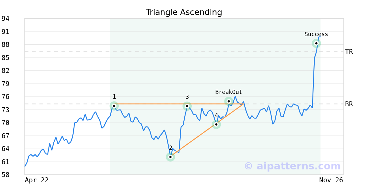 On September 11, 2025, A.I.dvisor detected a Triangle Ascending Pattern (Bullish) for ePlus (PLUS, $74.88). On September 11, 2025, A.I.dvisor confirmed the Bullish pattern, setting a target price of $86.39. 60 days later, on November 10, 2025, PLUS reached the target price resulting in a +1 for traders who took a long position in the stock.