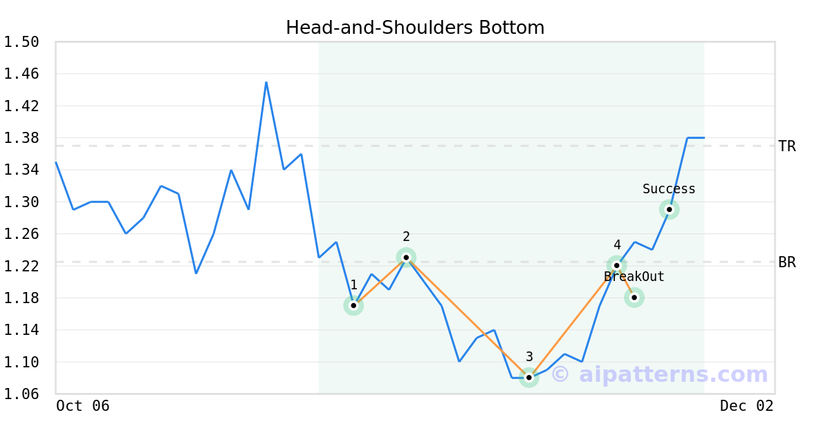 On November 20, 2025, A.I.dvisor detected a Head-and-Shoulders Bottom Pattern (Bullish) for Patriot National Bancorp (PNBK, $1.18). On November 20, 2025, A.I.dvisor confirmed the Bullish pattern, setting a target price of $1.37. 4 days later, on November 24, 2025, PNBK reached the target price resulting in a for traders who took a long position in the stock.