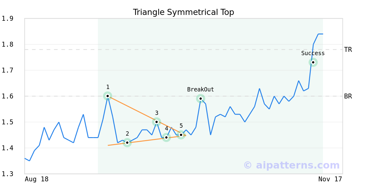 On October 02, 2025, A.I.dvisor detected a Triangle Symmetrical Top Pattern (Bullish) for Outdoor Holding Company (POWW, $1.45). On October 08, 2025, A.I.dvisor confirmed the Bullish pattern, setting a target price of $1.78. 33 days later, on November 10, 2025, POWW reached the target price resulting in a +1 for traders who took a long position in the stock.