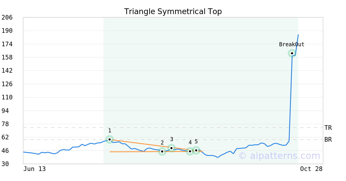 On September 04, 2025, A.I.dvisor detected a Triangle Symmetrical Top Pattern (Bullish) for Praxis Precision Medicines (PRAX, $46.09). On October 16, 2025, A.I.dvisor confirmed the Bullish pattern, setting a target price of $73.65. On October 16, 2025, PRAX reached the target price resulting in a +25 for traders who took a long position in the stock.