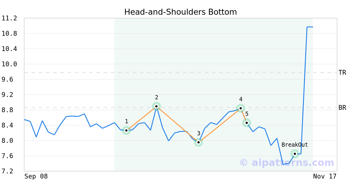 On October 29, 2025, A.I.dvisor detected a Head-and-Shoulders Bottom Pattern (Bullish) for PubMatic (PUBM, $8.46). On November 10, 2025, A.I.dvisor confirmed the Bullish pattern, setting a target price of $9.78. On November 10, 2025, PUBM reached the target price resulting in a for traders who took a long position in the stock.