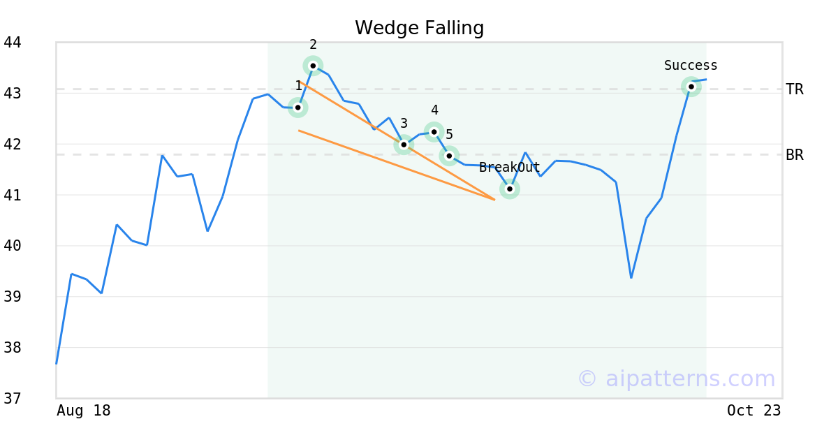 On September 24, 2025, A.I.dvisor detected a Wedge Falling Pattern (Bullish) for Rexford Industrial Realty (REXR, $41.33). On September 30, 2025, A.I.dvisor confirmed the Bullish pattern, setting a target price of $43.08. 16 days later, on October 16, 2025, REXR reached the target price resulting in a for traders who took a long position in the stock.