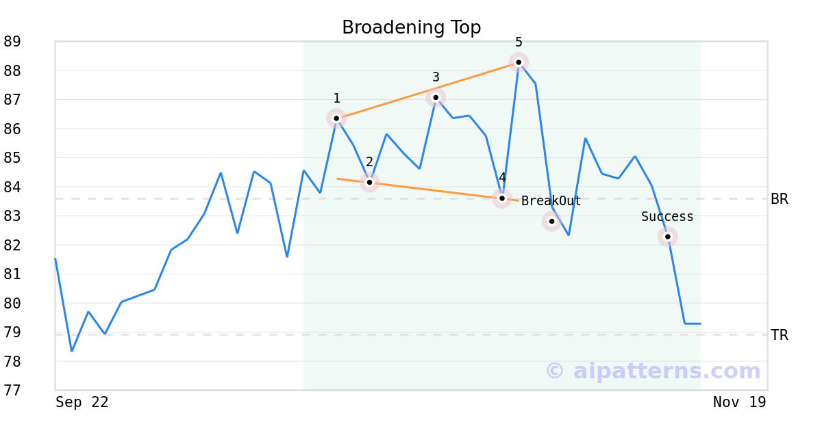 On October 30, 2025, A.I.dvisor detected a Broadening Top Pattern (Bearish) for Rogers Corp (ROG, $88.27). 4 days later, on November 03, 2025, A.I.dvisor confirmed the Bearish pattern, setting a target price of the stock. On November 12, 2025, the stock hit the target price of $78.91 – resulting in a gain for traders who shorted the stock on the pattern detection date.