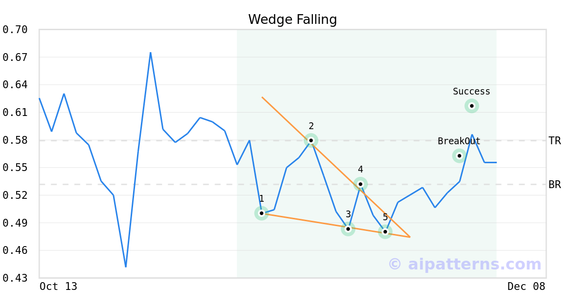 On November 20, 2025, A.I.dvisor detected a Wedge Falling Pattern (Bullish) for Reviva Pharmaceuticals Holdings (RVPH, $0.48). On November 28, 2025, A.I.dvisor confirmed the Bullish pattern, setting a target price of $0.58. 3 days later, on December 01, 2025, RVPH reached the target price resulting in a +2 for traders who took a long position in the stock.