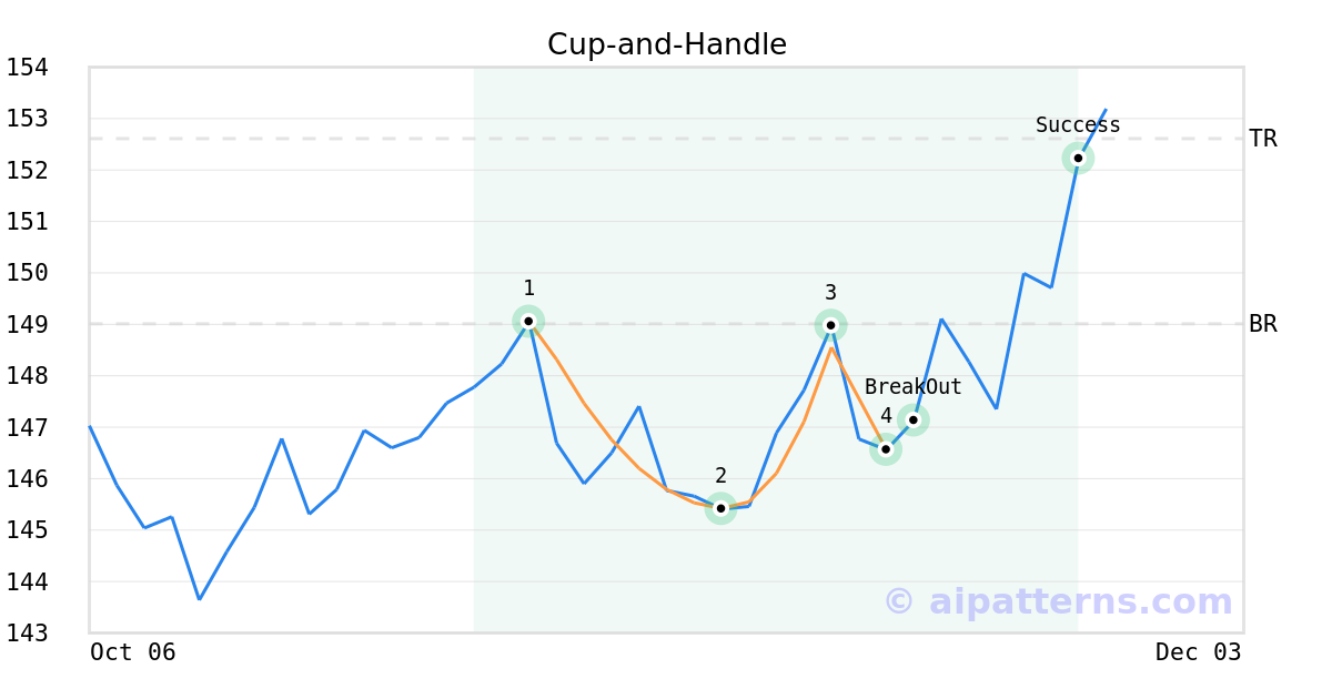 On November 14, 2025, A.I.dvisor detected a Cup-and-Handle Pattern (Bullish) for Royal Bank of Canada (RY, $146.56). On November 17, 2025, A.I.dvisor confirmed the Bullish pattern, setting a target price of $152.61. 8 days later, on November 25, 2025, RY reached the target price resulting in a for traders who took a long position in the stock.
