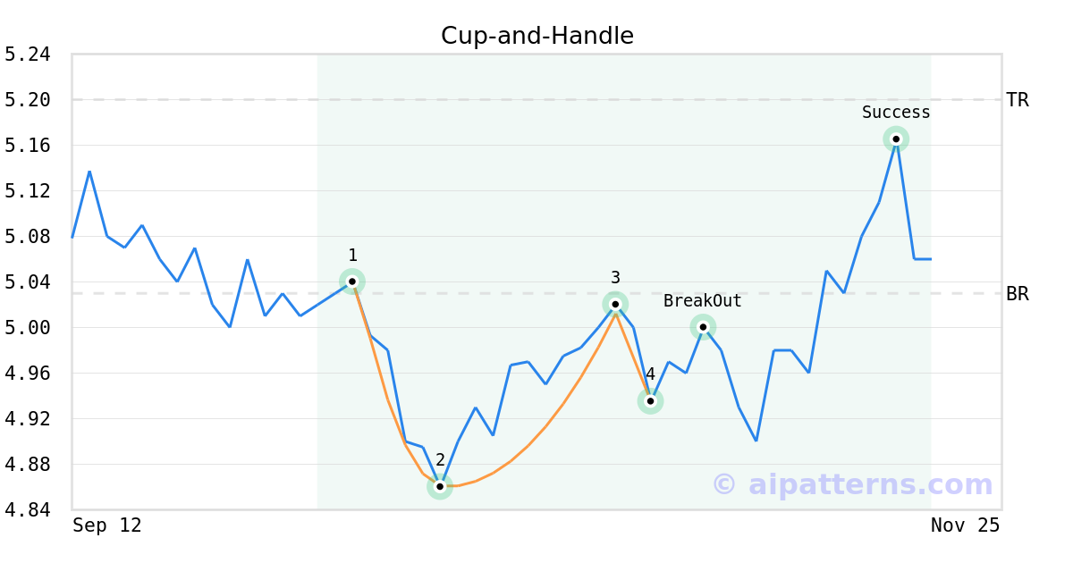 On October 29, 2025, A.I.dvisor detected a Cup-and-Handle Pattern (Bullish) for Global Self Storage (SELF, $4.94). On November 03, 2025, A.I.dvisor confirmed the Bullish pattern, setting a target price of $5.20. 15 days later, on November 18, 2025, SELF reached the target price resulting in a for traders who took a long position in the stock.