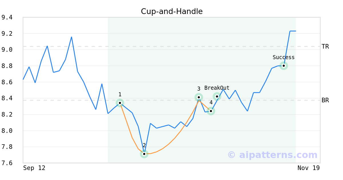 On October 27, 2025, A.I.dvisor detected a Cup-and-Handle Pattern (Bullish) for Seanergy Maritime Holdings Corp (SHIP, $8.24). On October 28, 2025, A.I.dvisor confirmed the Bullish pattern, setting a target price of $9.04. 15 days later, on November 12, 2025, SHIP reached the target price resulting in a for traders who took a long position in the stock.