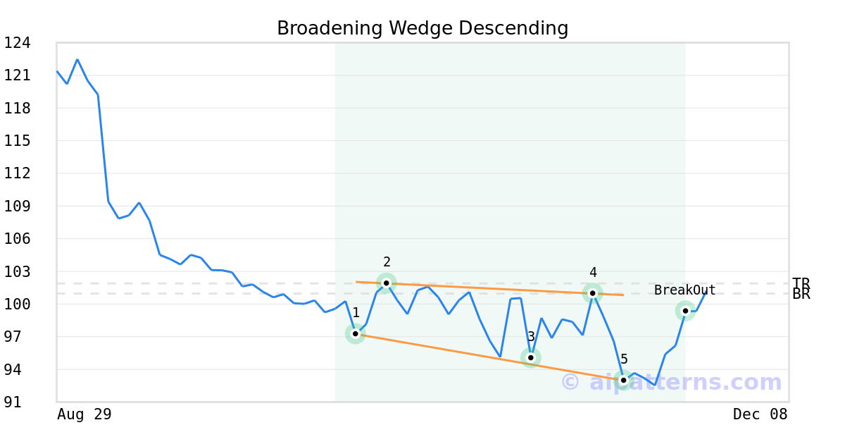 On November 17, 2025, A.I.dvisor detected a Broadening Wedge Descending Pattern (Bullish) for SkyWest (SKYW, $92.97). On November 25, 2025, A.I.dvisor confirmed the Bullish pattern, setting a target price of $101.89. On November 25, 2025, SKYW reached the target price resulting in a for traders who took a long position in the stock.