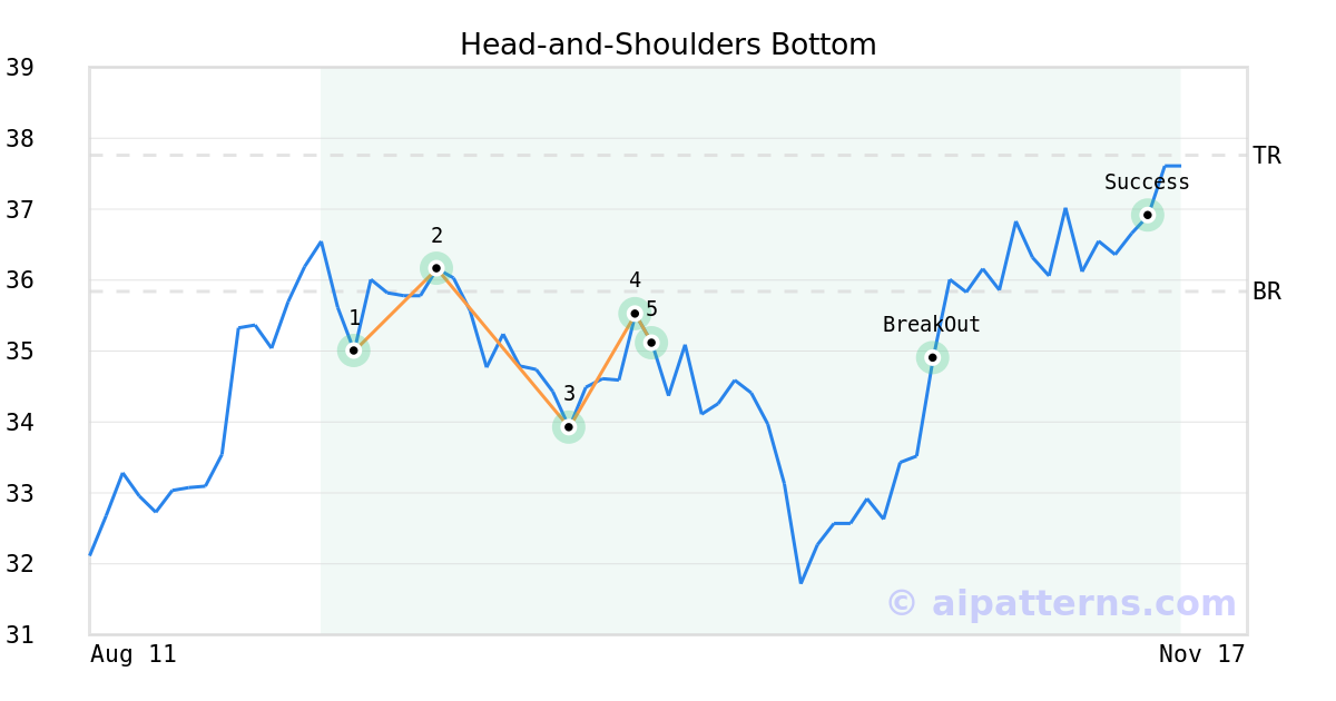 On September 29, 2025, A.I.dvisor detected a Head-and-Shoulders Bottom Pattern (Bullish) for SLB Limited (SLB, $35.11). On October 22, 2025, A.I.dvisor confirmed the Bullish pattern, setting a target price of $37.76. 19 days later, on November 10, 2025, SLB reached the target price resulting in a for traders who took a long position in the stock.