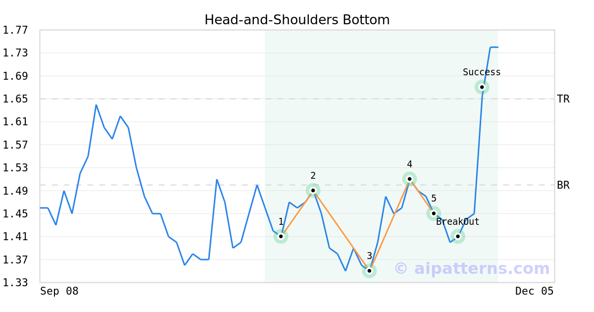 On November 14, 2025, A.I.dvisor detected a Head-and-Shoulders Bottom Pattern (Bullish) for SmartRent (SMRT, $1.45). On November 19, 2025, A.I.dvisor confirmed the Bullish pattern, setting a target price of $1.65. 5 days later, on November 24, 2025, SMRT reached the target price resulting in a +1 for traders who took a long position in the stock.