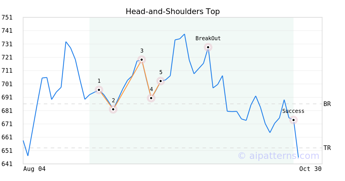 On September 15, 2025, A.I.dvisor detected a Head-and-Shoulders Top Pattern (Bearish) for Spotify Technology SA (SPOT, $703.10). 14 days later, on September 29, 2025, A.I.dvisor confirmed the Bearish pattern, setting a target price of the stock. On October 23, 2025, the stock hit the target price of $653.03 – resulting in a gain for traders who shorted the stock on the pattern detection date.