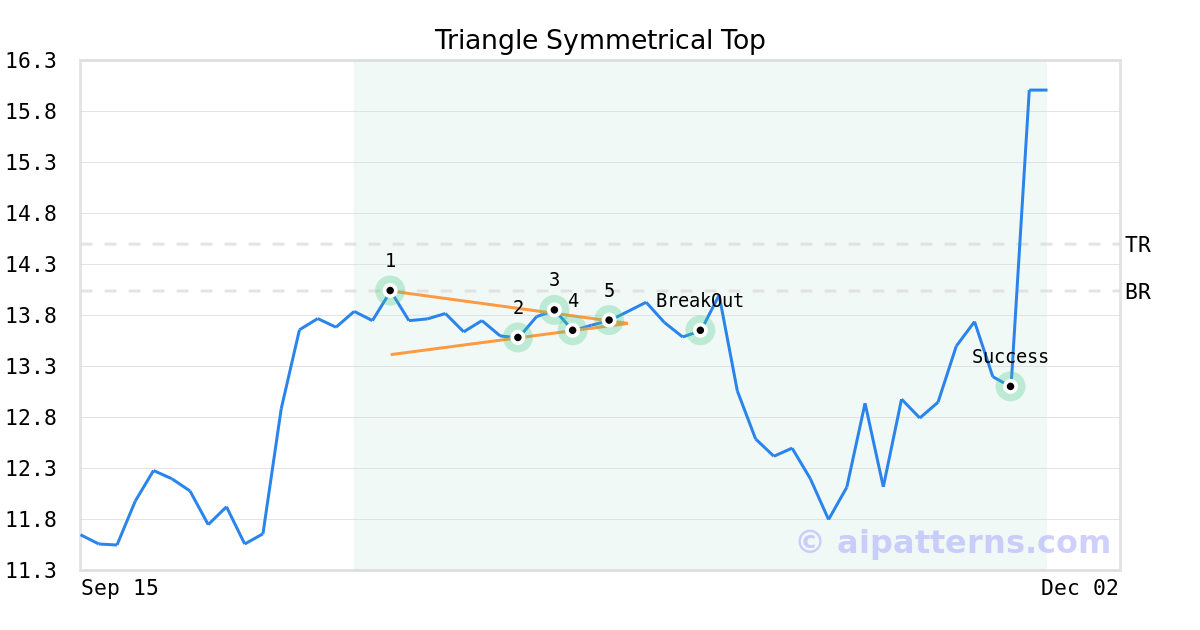 On October 24, 2025, A.I.dvisor detected a Triangle Symmetrical Top Pattern (Bullish) for Surrozen (SRZN, $13.75). On October 30, 2025, A.I.dvisor confirmed the Bullish pattern, setting a target price of $14.50. 25 days later, on November 24, 2025, SRZN reached the target price resulting in a for traders who took a long position in the stock.
