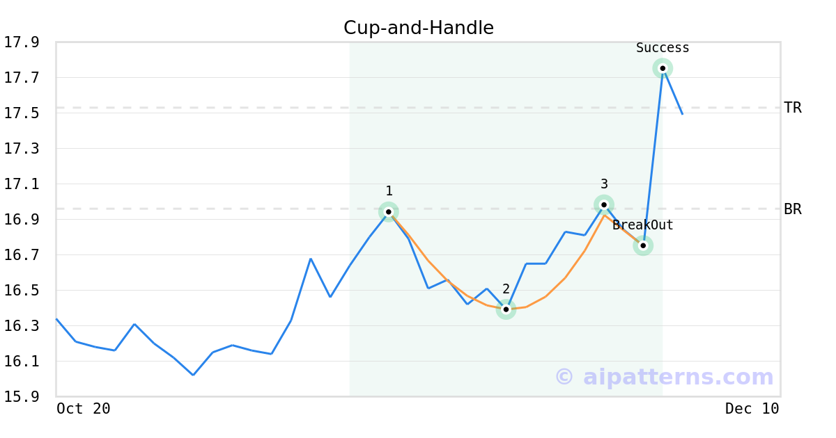 On December 02, 2025, A.I.dvisor detected a Cup-and-Handle Pattern (Bullish) for SWK Holdings Corp (SWKH, $16.75). On December 02, 2025, A.I.dvisor confirmed the Bullish pattern, setting a target price of $17.53. 1 day later, on December 03, 2025, SWKH reached the target price resulting in a for traders who took a long position in the stock.