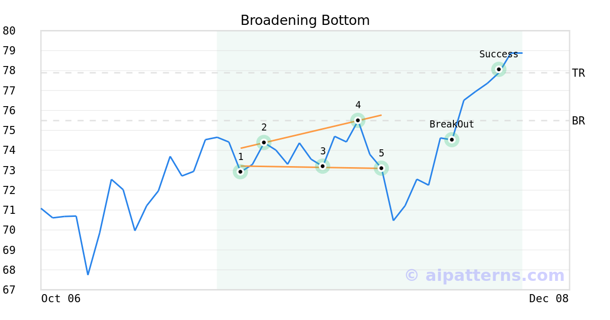 On November 14, 2025, A.I.dvisor detected a Broadening Bottom Pattern (Bullish) for Synchrony Financial (SYF, $73.09). On November 24, 2025, A.I.dvisor confirmed the Bullish pattern, setting a target price of $77.89. 7 days later, on December 01, 2025, SYF reached the target price resulting in a for traders who took a long position in the stock.