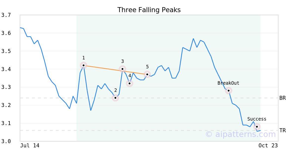Following a 3-day decline, the stock is projected to fall further. Considering past instances where TBLA declined for three days, the price rose further in of 62 cases within the following month. The odds of a continued downward trend are .