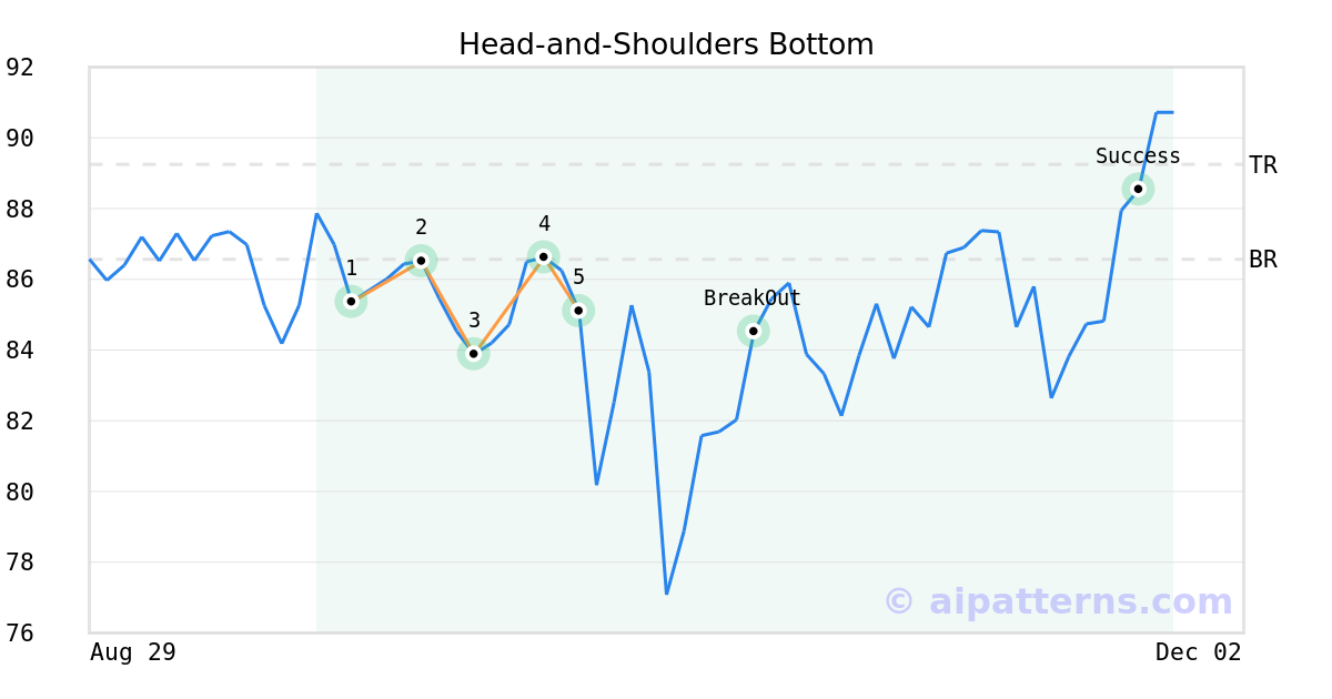 On October 09, 2025, A.I.dvisor detected a Head-and-Shoulders Bottom Pattern (Bullish) for Texas Capital Bancshares (TCBI, $85.10). On October 23, 2025, A.I.dvisor confirmed the Bullish pattern, setting a target price of $89.25. 32 days later, on November 24, 2025, TCBI reached the target price resulting in a for traders who took a long position in the stock.