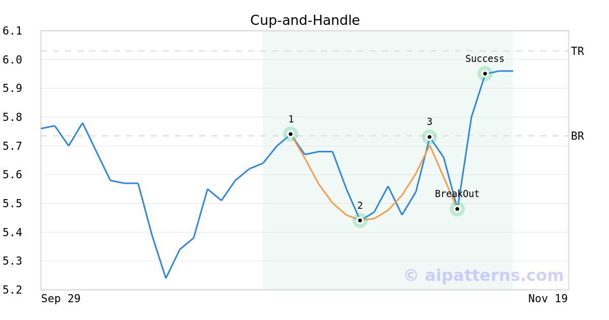 On November 10, 2025, A.I.dvisor detected a Cup-and-Handle Pattern (Bullish) for TRIPLEPOINT VENTURE GROWTH BDC Corp (TPVG, $5.48). On November 10, 2025, A.I.dvisor confirmed the Bullish pattern, setting a target price of $6.03. 2 days later, on November 12, 2025, TPVG reached the target price resulting in a for traders who took a long position in the stock.