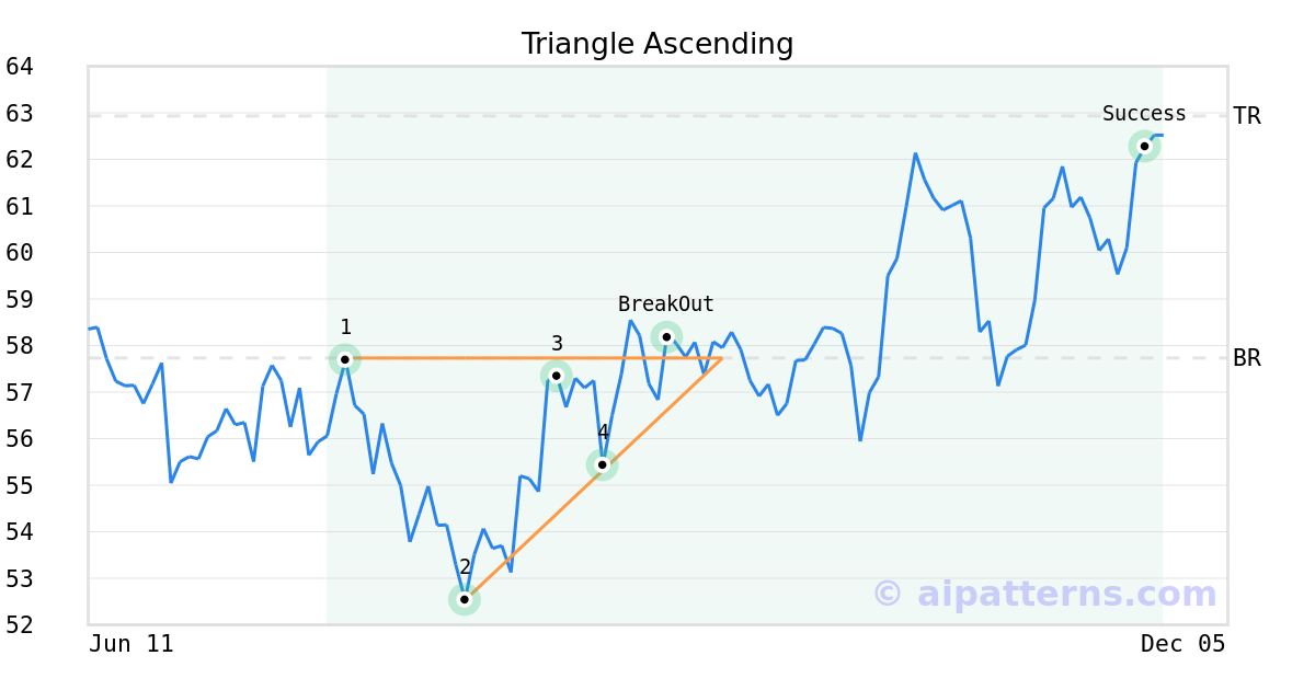 On September 11, 2025, A.I.dvisor detected a Triangle Ascending Pattern (Bullish) for Terreno Realty Corp (TRNO, $58.17). On September 11, 2025, A.I.dvisor confirmed the Bullish pattern, setting a target price of $62.93. 74 days later, on November 24, 2025, TRNO reached the target price resulting in a for traders who took a long position in the stock.