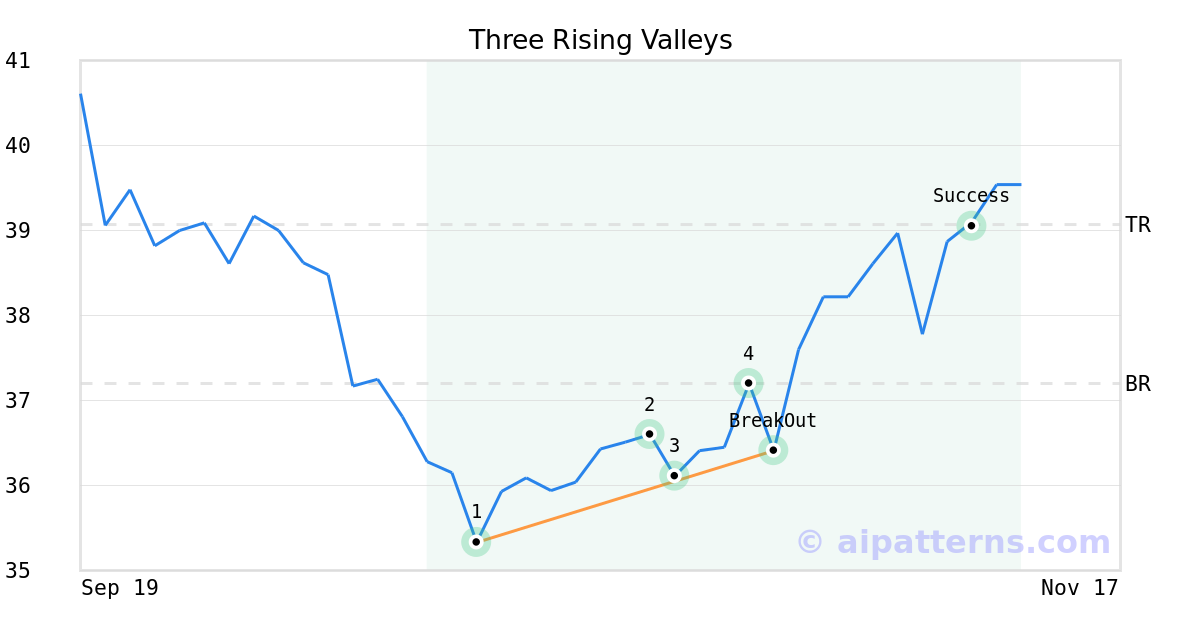 On October 29, 2025, A.I.dvisor detected a Three Rising Valleys Pattern (Bullish) for Universal Health Realty Income Trust (UHT, $36.41). On October 29, 2025, A.I.dvisor confirmed the Bullish pattern, setting a target price of $39.07. 12 days later, on November 10, 2025, UHT reached the target price resulting in a for traders who took a long position in the stock.