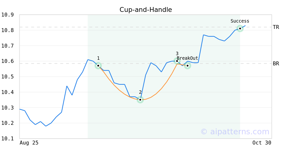 On October 09, 2025, A.I.dvisor detected a Cup-and-Handle Pattern (Bullish) for INVESCO CALIFORNIA VALUE MUNI Income TRUST (VCV, $10.51). On October 09, 2025, A.I.dvisor confirmed the Bullish pattern, setting a target price of $10.82. 14 days later, on October 23, 2025, VCV reached the target price resulting in a for traders who took a long position in the stock.
