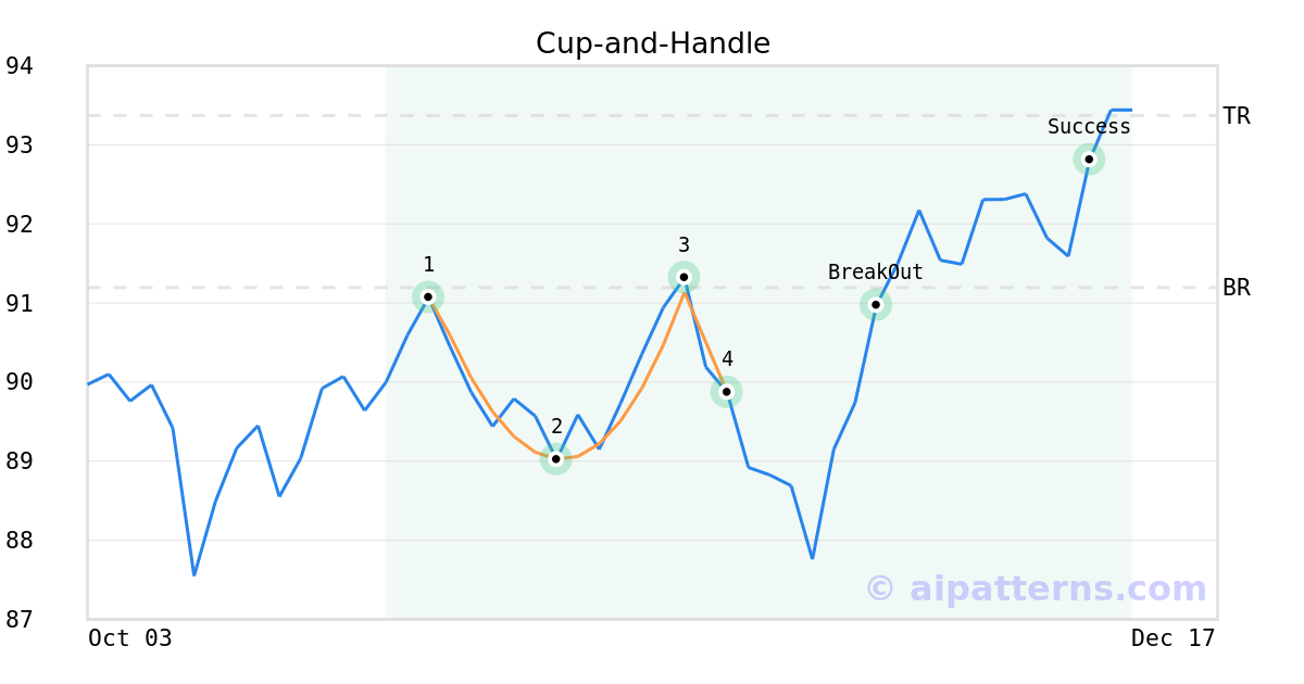 On November 14, 2025, A.I.dvisor detected a Cup-and-Handle Pattern (Bullish) for Vanguard Russell 1000 Value ETF (VONV, $89.87). On November 25, 2025, A.I.dvisor confirmed the Bullish pattern, setting a target price of $93.37. 15 days later, on December 10, 2025, VONV reached the target price resulting in a for traders who took a long position in the stock.
