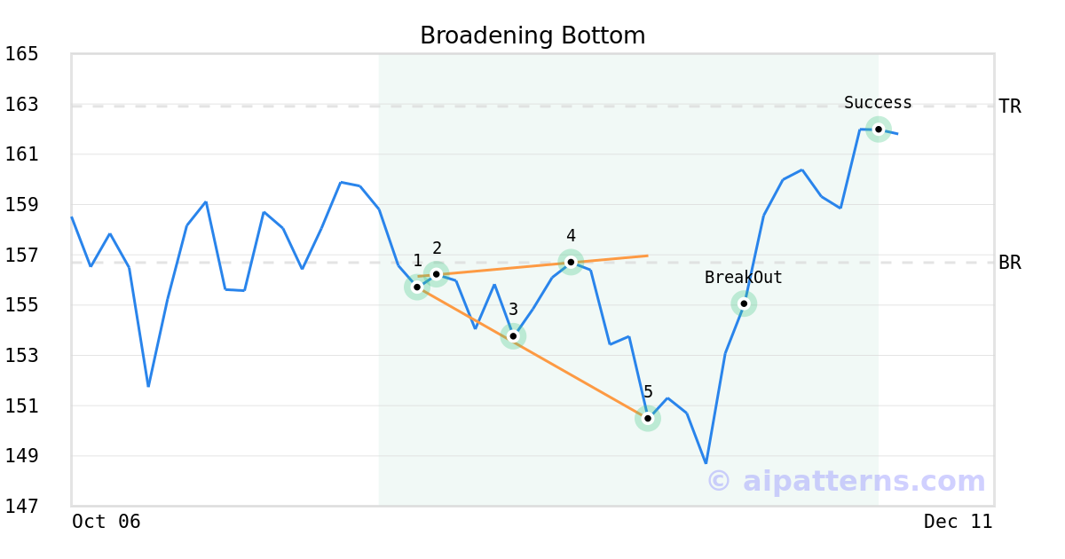 On November 17, 2025, A.I.dvisor detected a Broadening Bottom Pattern (Bullish) for Vanguard Russell 2000 Value ETF (VTWV, $150.47). On November 24, 2025, A.I.dvisor confirmed the Bullish pattern, setting a target price of $162.91. 10 days later, on December 04, 2025, VTWV reached the target price resulting in a for traders who took a long position in the stock.