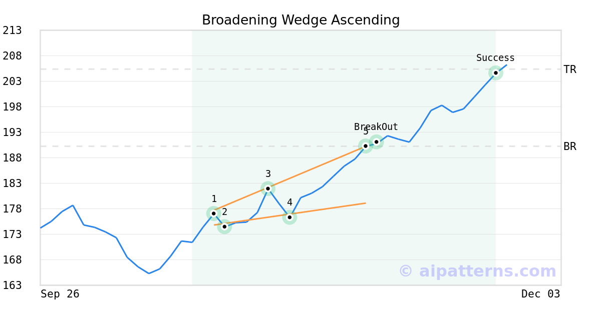 On November 07, 2025, A.I.dvisor detected a Broadening Wedge Ascending Pattern (Bullish) for Welltower (WELL, $189.51). On November 10, 2025, A.I.dvisor confirmed the Bullish pattern, setting a target price of $205.38. 15 days later, on November 25, 2025, WELL reached the target price resulting in a for traders who took a long position in the stock.