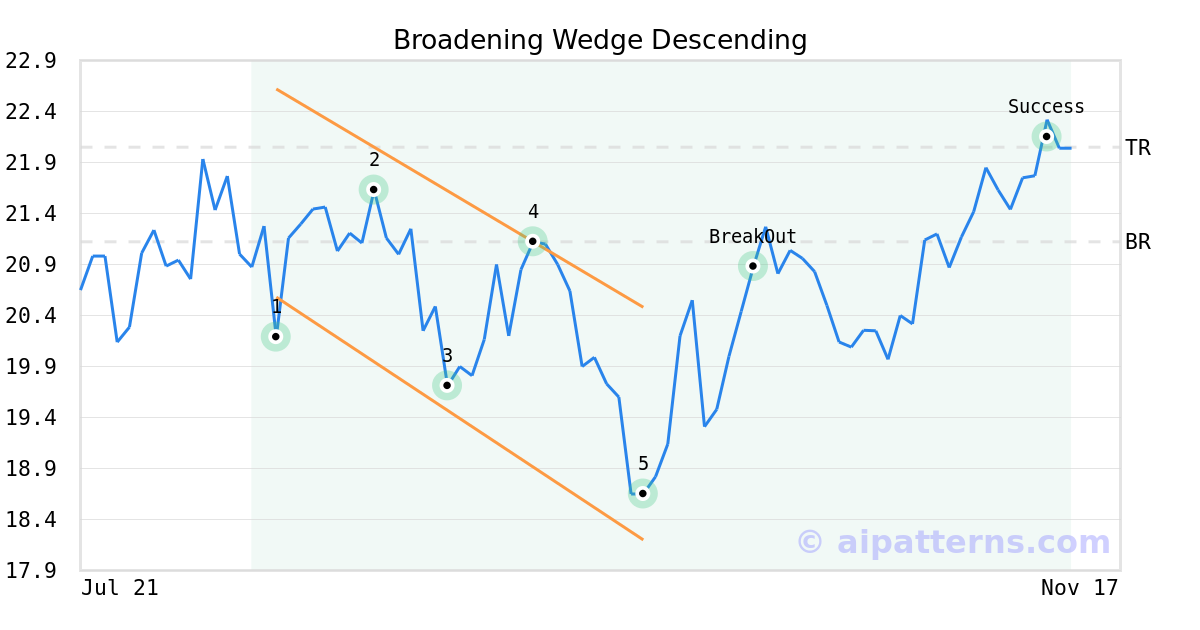 On September 24, 2025, A.I.dvisor detected a Broadening Wedge Descending Pattern (Bullish) for G Willi-Food International Ltd (WILC, $18.65). On October 07, 2025, A.I.dvisor confirmed the Bullish pattern, setting a target price of $22.05. 34 days later, on November 10, 2025, WILC reached the target price resulting in a +1 for traders who took a long position in the stock.