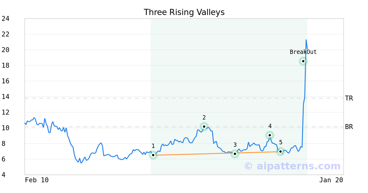 On November 12, 2025, A.I.dvisor detected a Three Rising Valleys Pattern (Bullish) for Wave Life Sciences Ltd (WVE, $6.96). On December 08, 2025, A.I.dvisor confirmed the Bullish pattern, setting a target price of $13.80. On December 08, 2025, WVE reached the target price resulting in a +16 for traders who took a long position in the stock.