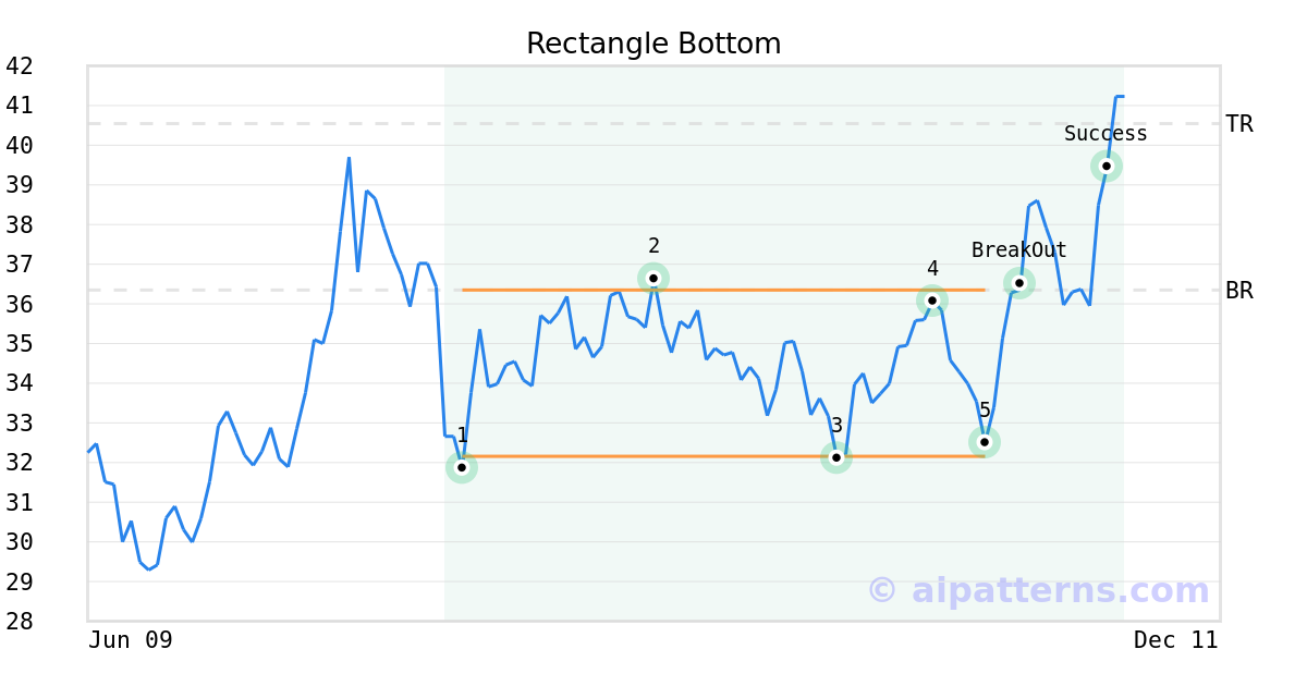 On November 04, 2025, A.I.dvisor detected a Rectangle Bottom Pattern (Bullish) for YETI Holdings (YETI, $32.50). On November 10, 2025, A.I.dvisor confirmed the Bullish pattern, setting a target price of $40.54. 14 days later, on November 24, 2025, YETI reached the target price resulting in a +2 for traders who took a long position in the stock.