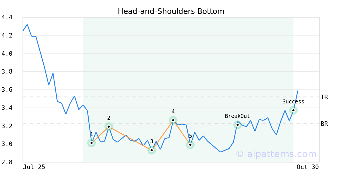 On September 19, 2025, A.I.dvisor detected a Head-and-Shoulders Bottom Pattern (Bullish) for Zedge (ZDGE, $2.99). On October 06, 2025, A.I.dvisor confirmed the Bullish pattern, setting a target price of $3.52. 17 days later, on October 23, 2025, ZDGE reached the target price resulting in a +1 for traders who took a long position in the stock.